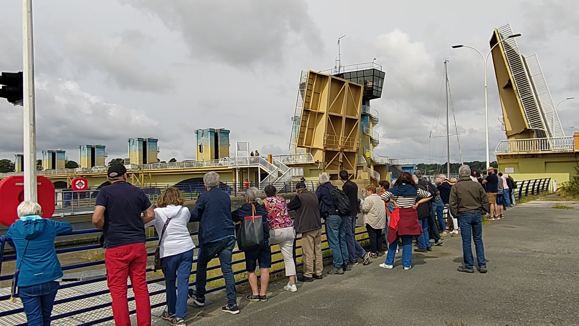 Nous faisons un petit détour par le barrage d'Arzal où nous assistons en direct à la levée du pont écluse qui ferme la retenue d'eau.