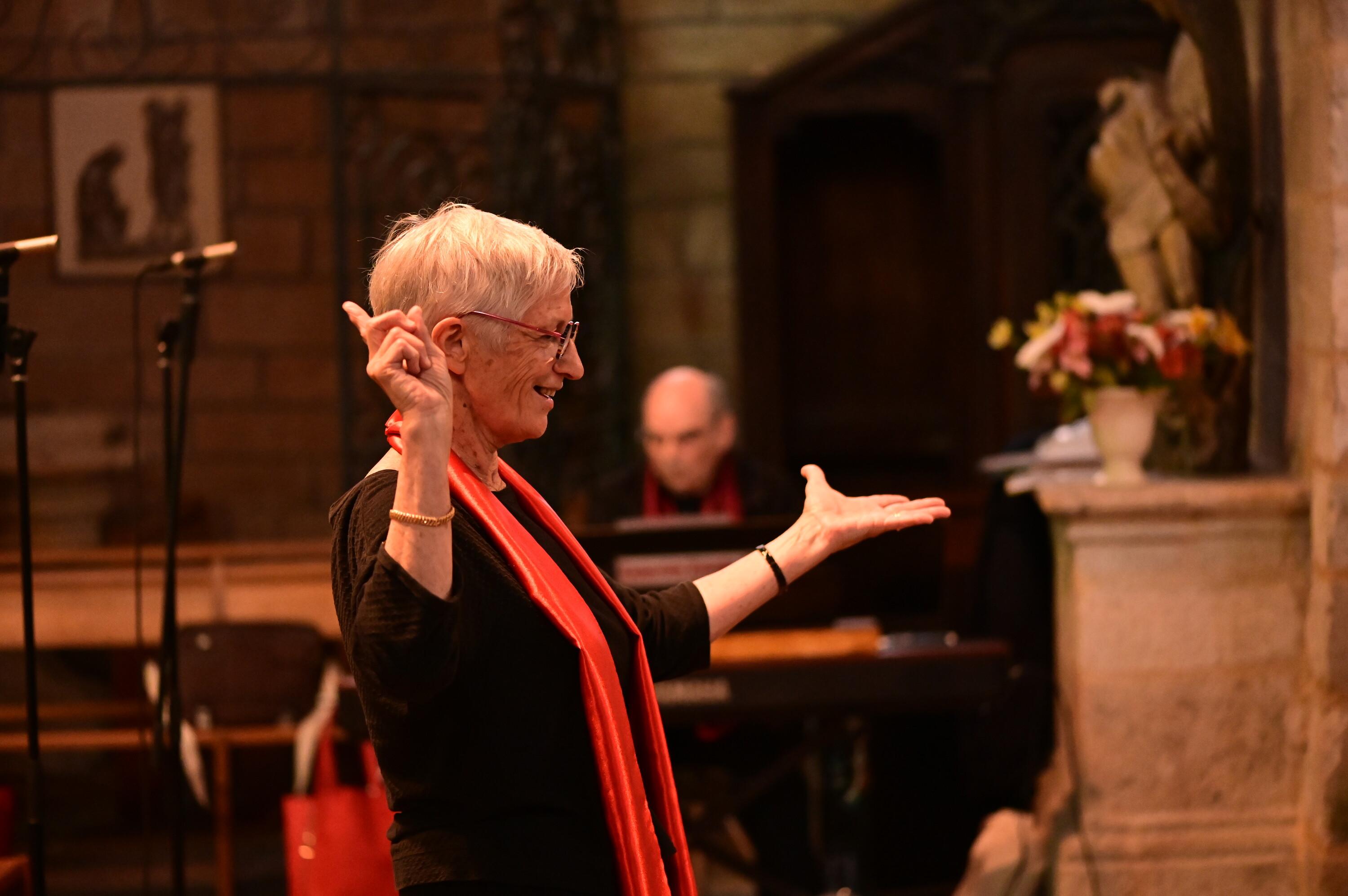 Fin d'année 2021, Marie-Pierre ne peux plus assurer les répétitions. Nous n'avons plus de chef de chœur ! C'est à nouveau la galère. Pour nos choristes regonflés à bloc après la période "covid", c'est la douche froide. Chacun y met du sien pour que l'activité perdure et Isabelle se jette à l'eau en assurant de manière tout à fait étonnante et avec efficacité, l'intérim de chef de chœur.